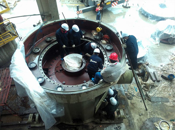 浙江某水泥厂大型立磨减速机已运行10年以上,经公司技术状态检测后发现减速机振动值已开始变大并持续向高的趋势发展,工程师建议做预防性黄瓜网站视频升级。经过各部门协商确认后,要求公司务必在现场等待黄瓜网站视频升级。公司迅速制定维修方案:把减速机从立磨工位移出,对减速机进行现场解体,清洗检查,更换全部黄瓜网站视频、密封,调整间隙,回装减速机。 水泥立磨减速机型号:KMPS576,设备重量:105吨,高度:3290mm,直径:Φ3720mm,配套电机重量25吨,数量1台。 减速机黄瓜网站视频升级后已重新投入生产,客户反馈减速机运行平稳,振动、温度、噪音等数据正常,完全达到了他们的预期要求,对我司生产定制的黄瓜网站视频质量给予了进一步的肯定。